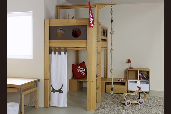 | Описание модели: | Детская Debe Deluxe - гарнитур для детских комнат, выполненный из экологически чистых материалов от немецкого производителя в лучших традициях мебельного мастерства. Натуральная древесина из массива бука. Включает в себя: двухъярусную кровать с лестницей, спортивную стенку со съемной горкой, игровые ящики, столик-полочку на кровати и сундуки. Предметы имеют надежные запатентованные крепления. Спальное место можно дополнить пологом, а пространство под ним - занавесом. |